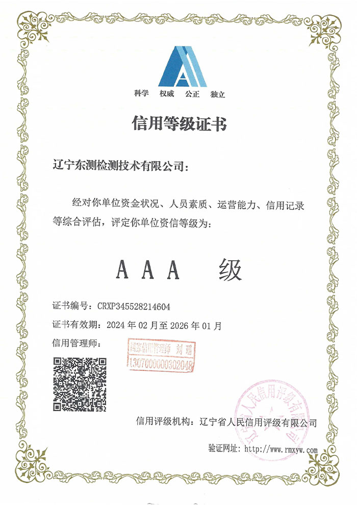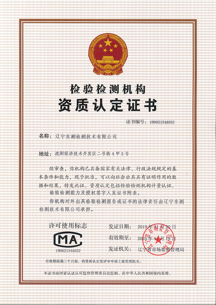 遼寧東測檢測技術有限公司成立于2007年6月21日,專注于為客戶提供計量、檢測以及技術咨詢與培訓的第三方計量檢測機構(gòu)。遼寧東測檢測技術有限公司通過了中國合格評定國家認可委員會認可(CNAS),獲得檢驗檢測機構(gòu)資質(zhì)認定(CMA),憑借著高效的服務網(wǎng)絡、雄厚的技術實力以及全面的業(yè)務范圍,本著“科學、公正、準確、真誠”的質(zhì)量方針,為社會提供優(yōu)質(zhì)計量檢測服務,打造國內(nèi)具有價值的計量技術機構(gòu)。